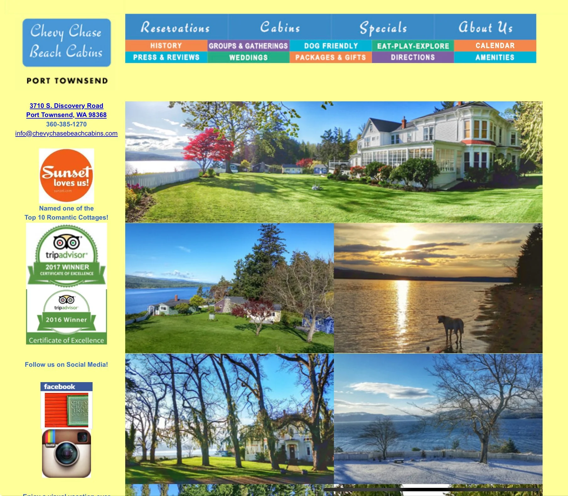 I partnered with Chevy Chase Beach Cabins—a historic property on Washington’s Discovery Bay—to reimagine their brand identity and digital presence. As a former guest (and bride!) at the property, I brought a personal perspective to the project, helping the owners honor the site's rich history while modernizing the experience for today's travelers.